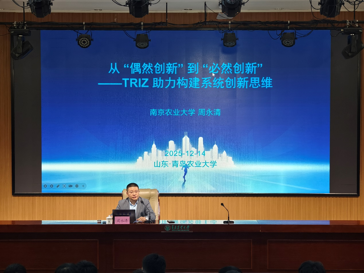 为切实提升研究生导师创新指导能力、夯实研究生创新实践根基,12月14日下午,机电工程学院特邀国家科技专家库创新方法专家、南京农业大学副教授周永清来校作《从“偶然创新”到“必然创新”——TRIZ助力构建系统创新思维》专题报告。学院副院长王家胜主持会议,学院全体硕士研究生导师、硕士研究生齐聚报告厅现场,共享创新思维盛宴。