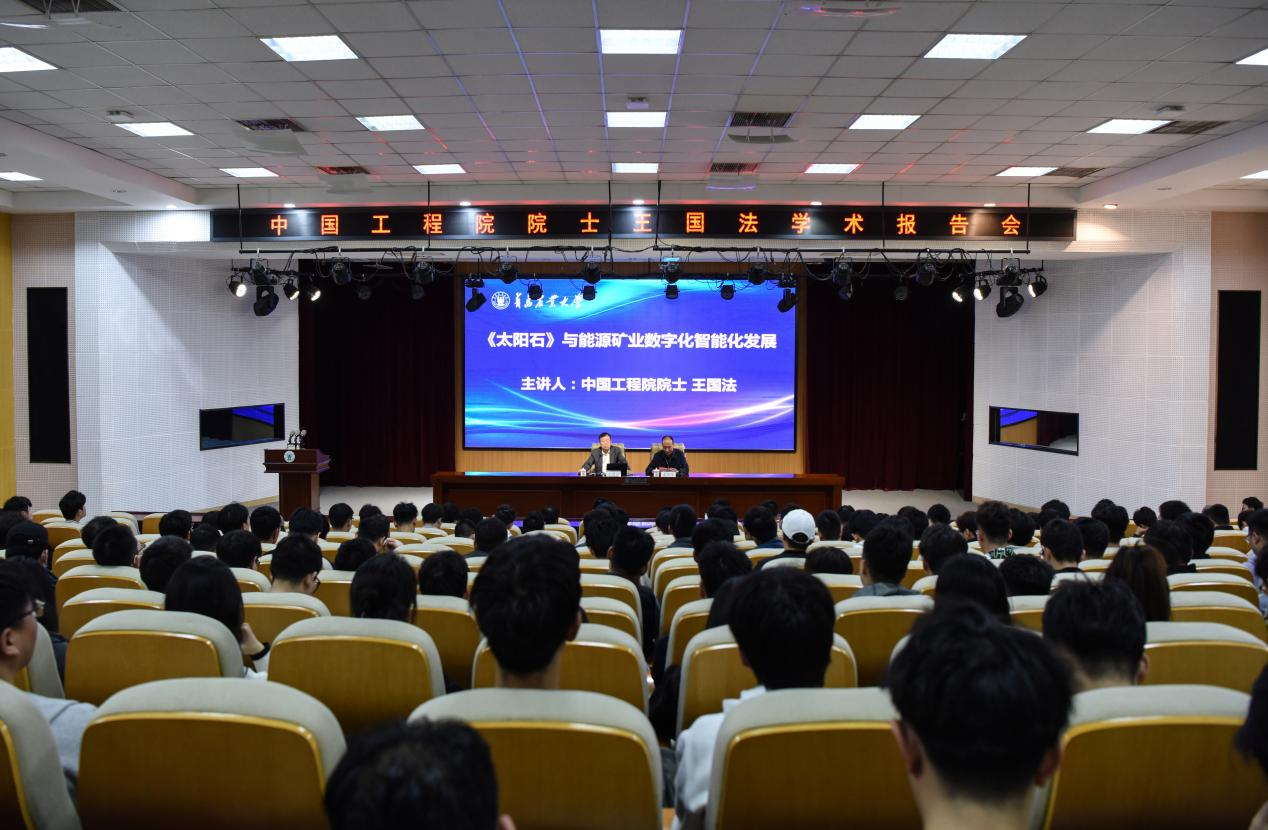 报告会上,孟晓军详细介绍王国法院士能源矿业数字化智能化科研成果。王国法院士作了题为《<太阳石>与能源矿业数字化智能化发展》学术报告。他从地质学、采矿学、煤化学等多学科融合视角,系统介绍煤炭勘探与开发、清洁利用和转化、矿区生态保护与修复等科学知识。他表示,中国在“双碳”目标的驱动下如何推动煤炭产业实现数字化智能化开采,已成为当前能源行业发展的重中之重。推进煤炭产业数字化、绿色化转型的路径,已成为我国煤炭工业高质量发展的必然选择。最后,王国法院士结合自身求学科研经历号召新时代青年大学生要把科研能力提升的重心放在原创能力的培育上,善于在科学研究“无人区”“前沿区”找到突破口,获取更多“0到1”的原创成果,并勉励同学们厚植家国情怀,弘扬以报国为民为内核的科学家精神,努力成为堪当强国建设、民族复兴大任的栋梁之才。