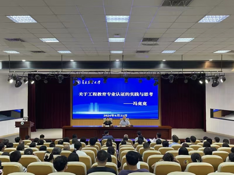 为扎实推进学校工程教育专业认证工作,进一步提高学科建设水平,6月21日,学校特邀山东农业大学教务处副处长、博士生导师、教授冯竟竟作“关于工程教育专业认证的实践与思考”专题报告会,机电工程学院、理学与信息科学学院全体教师及其他学院学术骨干240余人参加,报告会由副校长孟晓军主持。