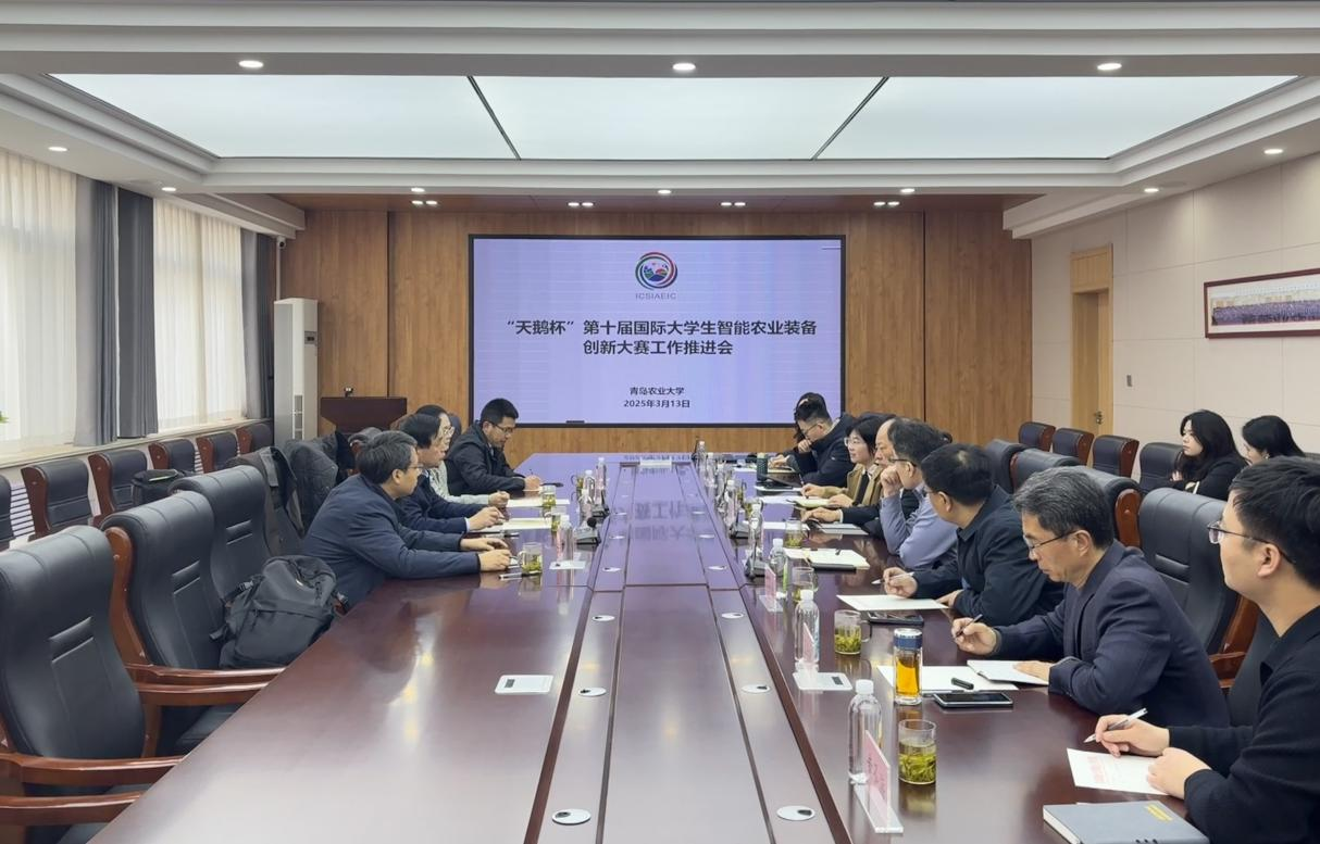 3月13日上午,“天鹅杯”第十届国际大学生智能农业装备创新大赛工作推进会在青岛农业大学召开,中国农业机械学会秘书长,大赛委员会副主任赵凤敏、江苏大学农业工程学院教授、大赛委员会常务副主任毛罕平、大赛秘书长徐立章等一行4人来访青岛农业大学并座谈交流,机电工程学院领导班子出席会议,会议由机电工程学院党委书记焦磊主持。