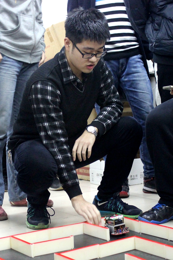 比赛分自制鼠和标准鼠两个组别进行。比赛成绩由电脑鼠穿越迷宫的时间决定。在CPU、红外模块、电机驱动的共同作用下,电脑鼠识别路况,寻找最短路线,并自动避开障碍,以穿越迷宫。穿越迷宫用时最短者获胜。比赛过程中,参赛队员不断调试电机,改良算法,以求性能达到最佳,让电脑鼠能迅速搜索迷宫,冲刺终点。经过调试,许多队伍的电脑鼠都成功穿越迷宫,顺利完成比赛,但有些队伍的表现却不尽人意:原地打转、中途停止的情况时有发生。