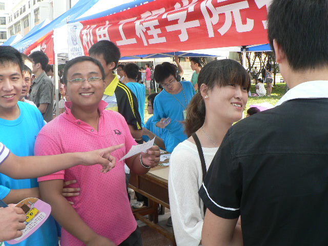 从清晨到中午不断地有新生前来报到,虽然中午的温度很高,他们的脸上却依然带着笑容,从他们的脸上我们看到了大一新生的朝气与活力。他们拖着行李一路走来,最令人印象深刻的是左脚被烫伤的男生,他赤脚报到,虽然走的很慢但是却坚定有力。大学,新的起点,新的开始,感受新的人生经历。