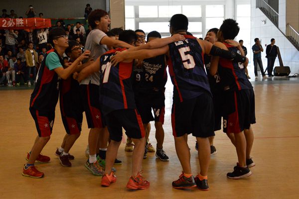 比赛仅剩四分钟时,蓝队仅以一分的优势领先于白队。比赛进入白热化阶段,全场人员屏住呼吸,翘首以待。时间一秒一秒的过去,篮球数次擦框而过,双方均未进球。在这最后的一分钟内,白队失误犯规,蓝队二罚进一,拿到比赛赛点!两队的班级呐喊助威,为队员们加油。