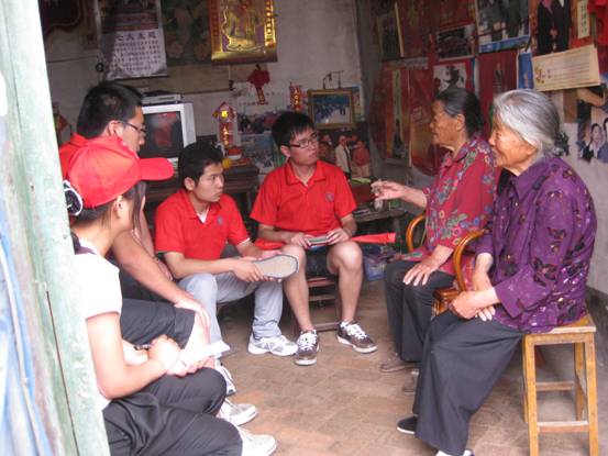 第二天,队员们按照原计划来到野店镇,寻访沂蒙六姐妹中健在的三位老人。在村支书的带领下我们很快找到了奶奶的住处,三位老人热情的接待了我们。听奶奶们为我们讲革命的故事,重温了那段革命历史。临走的时候,奶奶们一再跟队员们说,她们现在生活很好,不用挂念,回去好好学习一样是为国家做贡献。这种艰苦朴素的革命精神再一次感动了队员。