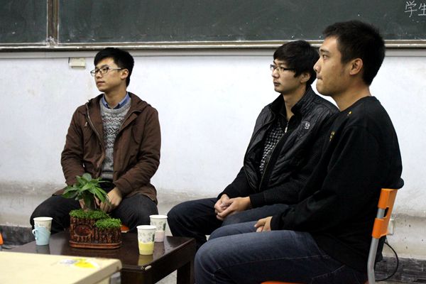 会上,三人分别向大家分享了自己的参赛经历,他们感慨:参赛的过程是充满艰难和辛酸的,但也让他们回味无穷。“参赛前的几周,经常晚上11点多才能回宿舍,困得不行了还要接受楼管的‘思想教育’”常增村说,“但是当我听到我们获得省金奖时,真是高兴到了极点。”罗梓良也向同学们分享了一些自己做公益活动的经验,并鼓励同学们要勇于尝试,在尝试、实践中发掘自己的潜力。李广宇在谈到自己的心得体会时说到:“我们大学生搞发明应该着重解决生活中的实际问题,注重实用性,要具有创新意识。”