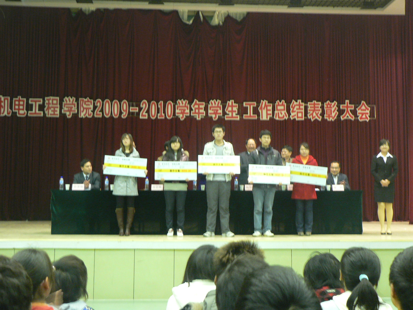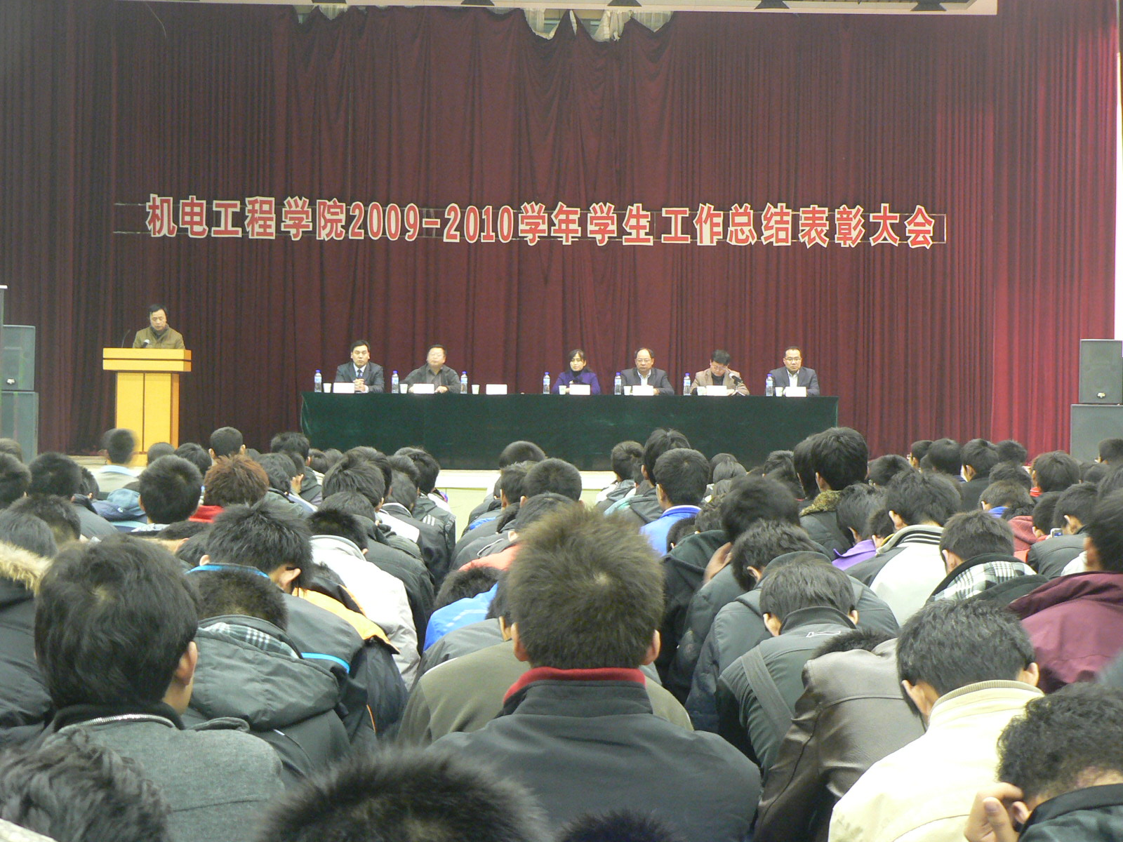 12月1日晚,机电工程学院2009-2010年度学生工作总结表彰大会于在校文体馆举行,学工部副部长张丽老师和学院领导一同出席了表彰大会。大会由学院党总支副书记王进国老师主持。