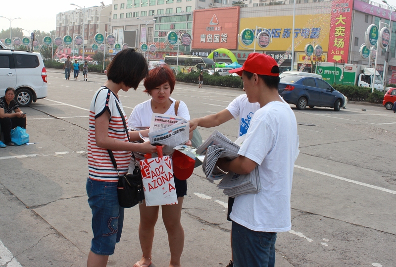 爱心是一片冬日的阳光,使饥寒交迫的人感到人间的温暖;爱心是一首飘荡在夜空里的歌谣,使孤苦无依的人获得心灵的慰藉;为更好的筹备我院第二届“传递知识 传递温暖”公益活动——玉树之行,也为了给玉树灾区的孩子们捐赠一个属于自己的水杯,7月6号,在我院团委和学生会的精心准备下,我院爱心公益服务团十名同学在城阳区附近进行爱心义卖报纸活动。
