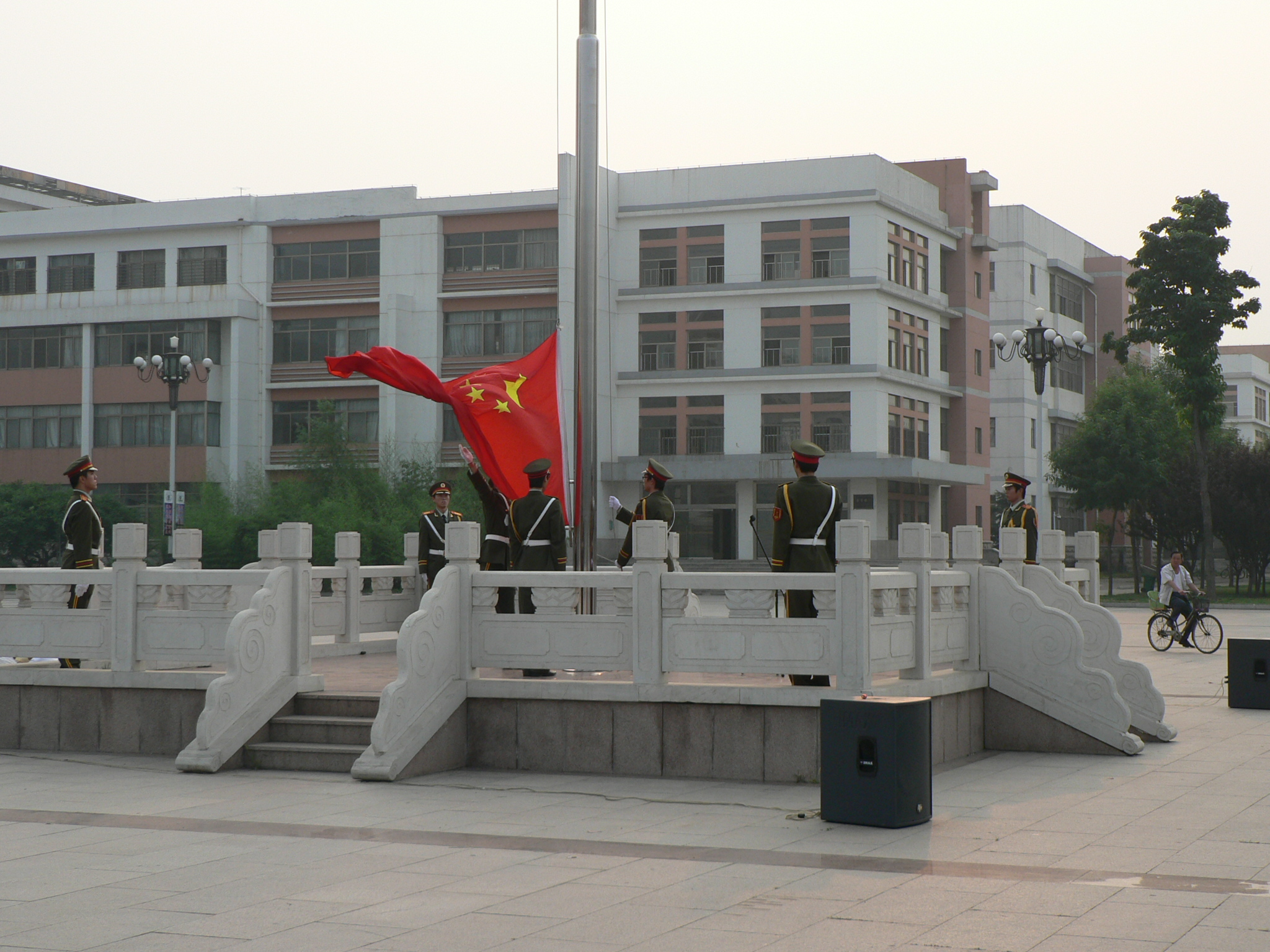 5月30日早上,我院全体同学在虹子广场举行了庄严的升国旗仪式。本次仪式由团总支王德国老师主持,学工办全体老师参加了本次升旗仪式。