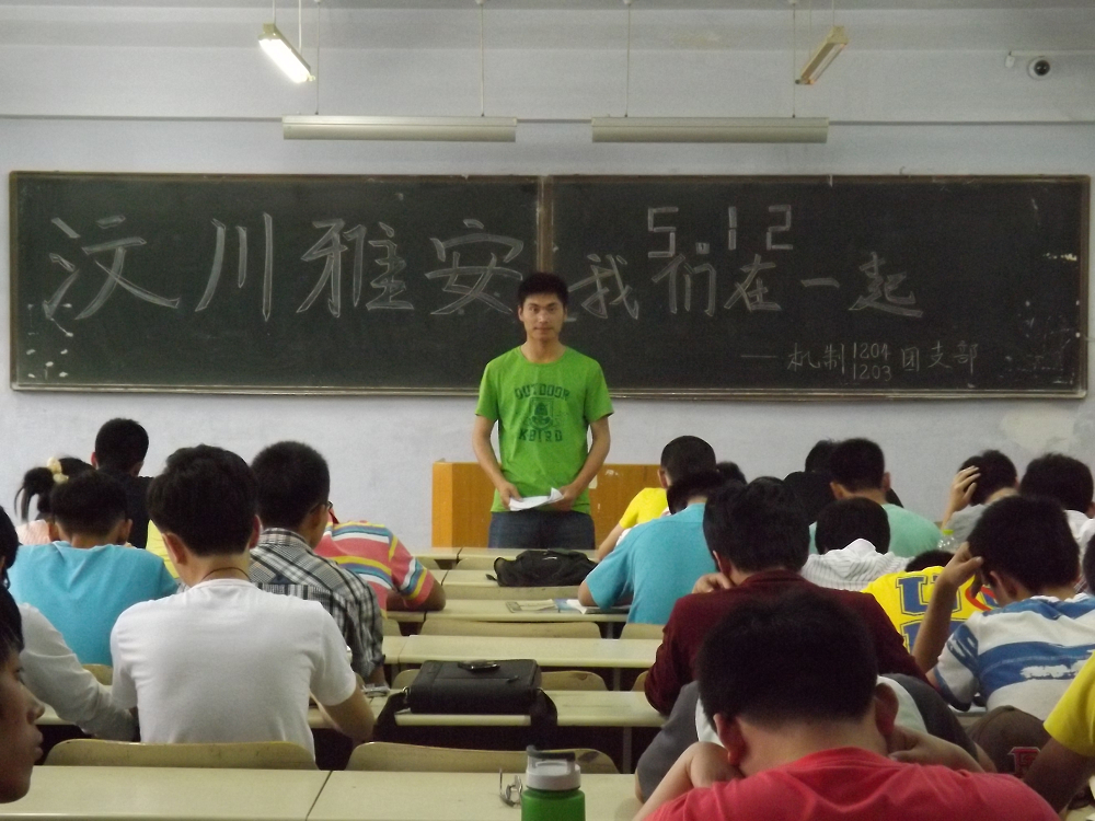 同学们像往常一样在晚上六点在各班团支书的带领下开展自己班的独具特色的主题团课活动。“汶川雅安我们在一起”,团结友爱可以战胜一切灾难;“缅怀前行”,铭记过去,展望未来,励志前行,争创辉煌;“感恩于心报恩于行 感恩母亲节”,一个关怀的电话,一条祝福的短信,一件温暖的礼物,都让母亲倍感欣慰,用实际行动回报母亲的养育之恩。同学们积极讨论,各抒己见,将团课进行的丰富而精彩。
