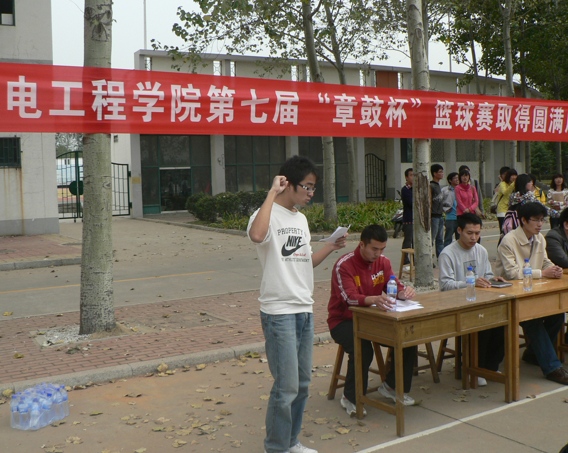 最后王老师宣布第七届“章鼓杯”篮球赛正式开幕。随即本届篮球赛第一轮的比赛在东篮球场开赛。
