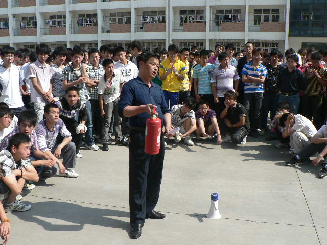 为进一步加强学院学生的消防安全意识,正确掌握消防器材的使用,掌握火场逃生的基本技能,5月27日下午,机电学院联合保卫处在西苑2号楼举行了消防演练活动。学院2010级全体同学参加了演习活动,学院党总支副书记王进国,团总支书记孙景福同高年级的学生干部一起观摩了演练过程。