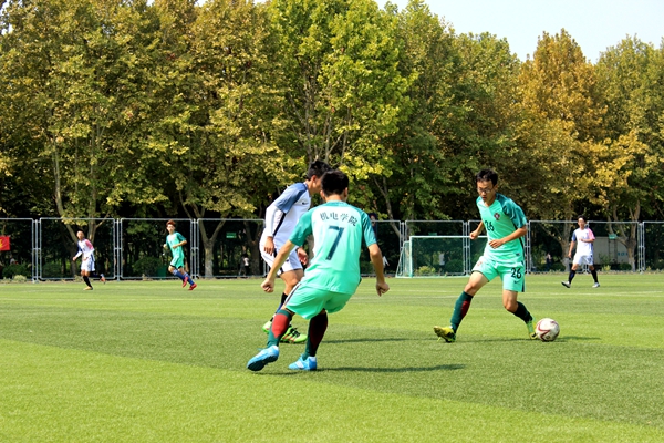 下半场易边再战,农学与植保学院随即展开猛烈攻势,意图进球反攻,但无奈我院防守严密,多次无功而返。此后我院开启进攻模式,99号张腾跃快速带球,禁区左侧低平球传出,26吴森炜跟近扣过防守队员,推射破门。在下半场3:1的领先优势下,张腾跃连过五人后,小角度抽射又进一球。我院最终以5:2取得本场比赛胜利。