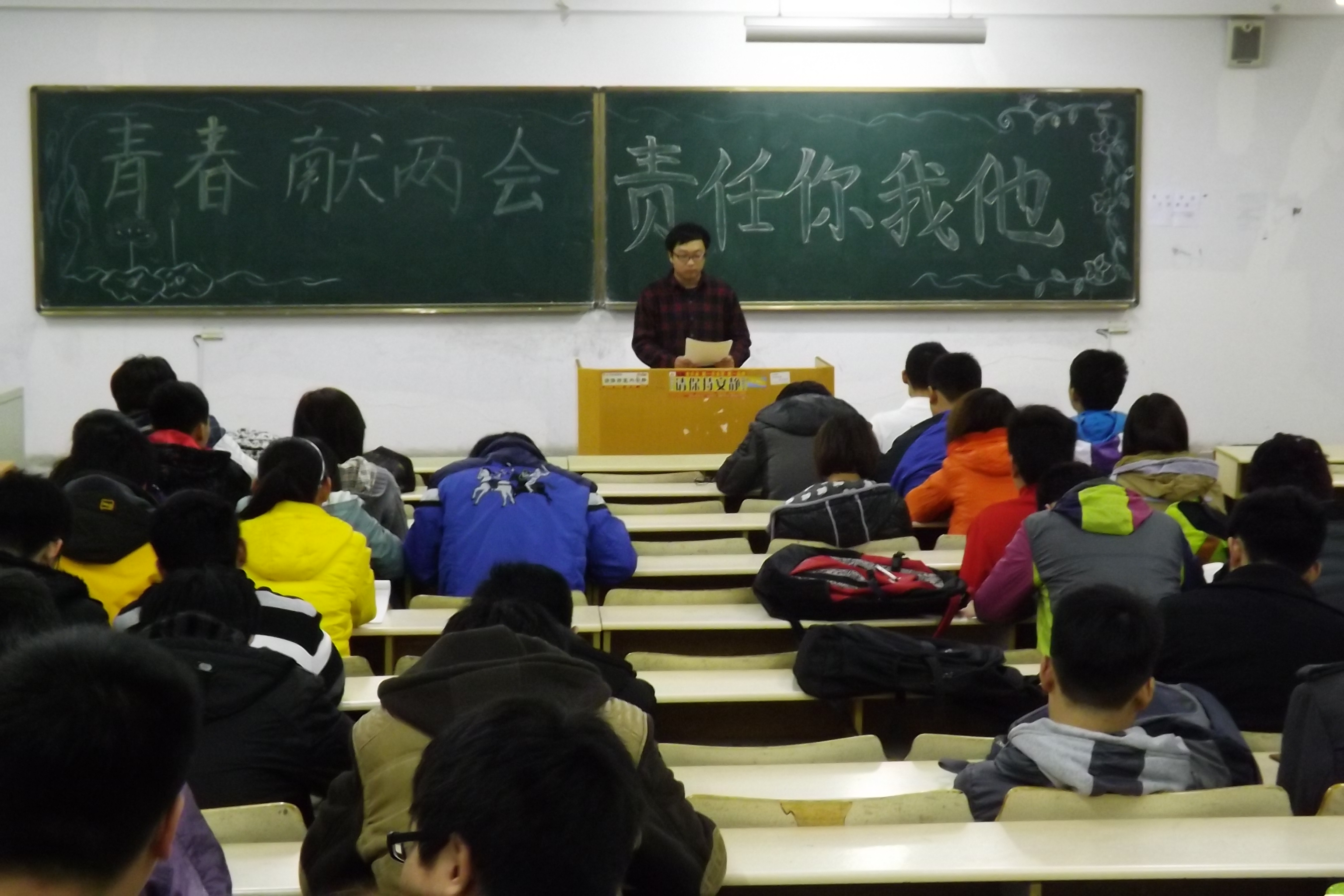 3月17日下午6点,我院12级同学在各班团支书的带领下开展了“青春献两会,责任你我他”的主题团课学习活动,此次团课主要是对两会精神的学习,使同学们加深对两会的了解,提高大学生对时事的关注力度,增强对民生的了解,在社会中承担起更多的责任。