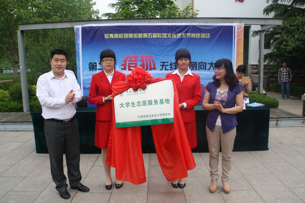 为倡议广大青年积极投身到志愿服务中,秉承“ 奉献、友爱、互助、进步”的志愿精神,同时丰富我院特色活动,鼓励同学们积极参与到科技文化活动中,5月19日,我院在文经楼前举行青岛农业大学志愿者服务基地签约暨第二届“猎狐”无线电测向大赛开幕仪式,城阳区第二实验小学校长矫伟,青岛农业大学团委书记初磊,我院党委副书记孙景福和我院团委书记孙晓凤出席了开幕仪式,本次仪式由孙晓凤书记主持。