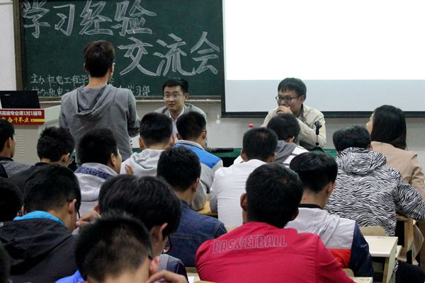 为了让大一新生尽快适应大学学习生活,掌握科学的学习方法,10月29日晚,机电工程学院学习经验交流会在教学楼D404举行。机电工程学院优秀毕业生刘晓庚和程龙来到现场与我院大一新生一起交流学习经验。