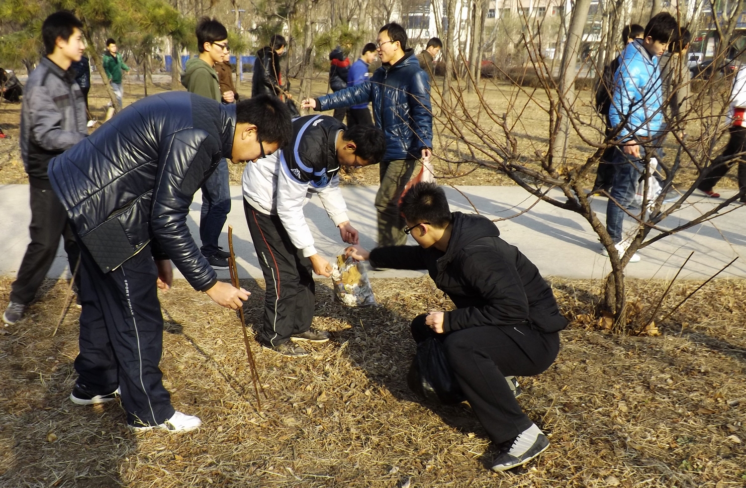 在早晨明媚的阳光下,同学们以抖擞的精神状态参加此次活动,在缺少工具的条件下,他们开动脑筋,利用地上的树枝制成简单的工具,将周围的垃圾一一清扫,连树叶堆、灌木丛的荫蔽之处也不放过。一小时的工作让校园的树林多了一份干净,让校园里多了一处笑声,让同学们心里多了一份责任感。他们用自己的行动将雷锋精神延续,用热心奉献的态度服务校园。