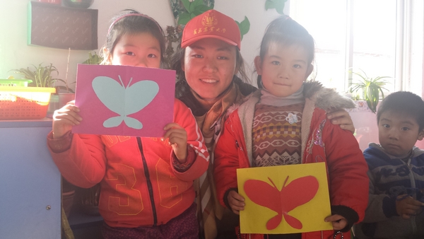 10日下午,队员们又来到黄山办中心幼儿园,和当地的留守儿童一起欢度了一个温暖的假期,队员们带去了糖果红包和书签卡片,并教给孩子们做贺卡,“我爱爸爸妈妈”“爸爸妈妈,你们回家吧”......卡片上每一个字眼都是孩子们对父母的爱与渴望。接下来,队员又到了建筑工地,替过年不能回家的大叔们写了贺卡和家书。