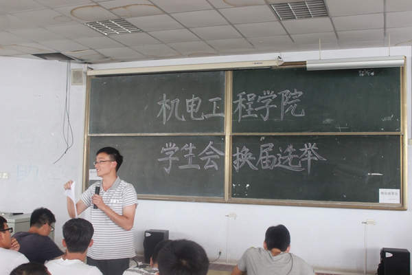8月23日下午,机电工程学院2014届学生会换届选举大会在教学区B203举行。机电学院团委书记孙晓凤、辅导员张琳、学生会学生干部及各班班委共同参加了会议。