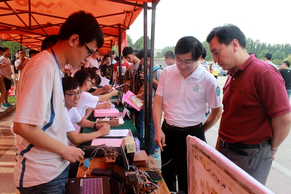 8月30日,新生报到第一天。上午,校党委书记李宝笃、校长宋希云、党委副书记刘国秋、副校长王伟到我院现场检查指导迎新工作。学院分党委书记蒋金琳、党委副书记孙景福及学工办老师、班主任都分别来到了报到现场,与学生和家长进行了亲切的交流。