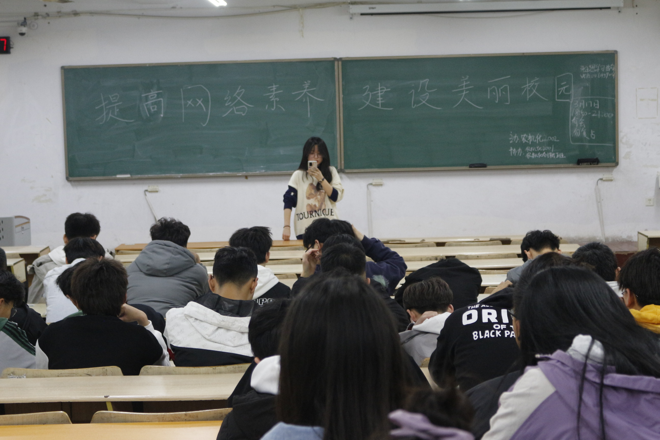 3月21日晚,为提高大学生网络素养,共建和谐美丽校园,青岛农业大学机电工程学院于教学区组织了以“提高网络素养,建设美丽校园”为主题的政治学习活动。