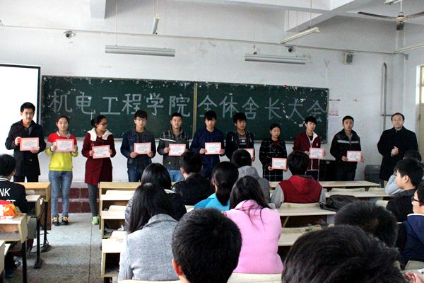 本次会议公布了《机电工程学院2015年10月份优秀宿舍名单》和《机电工程学院“个性化”宿舍获奖名单》,共评出优秀宿舍12个,个性化宿舍10个,其中515宿舍获得个性化宿舍一等奖。黄毅向优秀宿舍代表颁发流动红旗及奖品,并向“个性化”宿舍代表颁发装饰大赛获奖证书。在颁奖完毕后,舍管部展示了“个性化”宿舍的照片,供其他宿舍参观学习。紧接着,王玉鹏强调了近期在宿舍内务检查中发现的问题,并提出相应的解决办法。