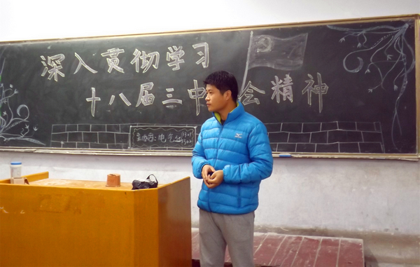 为了使同学们充分认识党的十八届三中全会召开的重大意义,并深入学习贯彻;落实党的十八届三中全会精神。12月8日晚机电工程学院12级、13级各团支部在教学区召开“贯彻落实十八大三中全会精神”的主题团课。