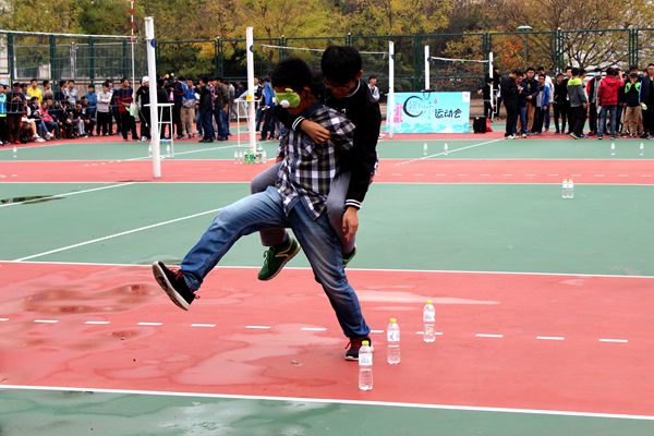 本次趣味运动会共有小保龄球、最佳搭档、兔子舞、螃蟹背西瓜、钓小鱼、乒乓球接力、人椅等七个比赛项目。在比赛过程中,同学们共同努力、默契配合,一起完成一个个比赛项目。人椅是本次活动最大的亮点,全班成员全部参加,前一个人坐在后一个人的腿上,围成一个圆圈,坚持时间最长的班级获胜。为了坚持更长的时间,有的班级更是用唱歌、喊口号的方式来鼓励彼此。测控1501班叶晓慧说道:“趣味运动会不仅让我们玩的开心,而且也让我们学会了班级合作和团结一心,让我们学会了不抛弃、不放弃的精神。”