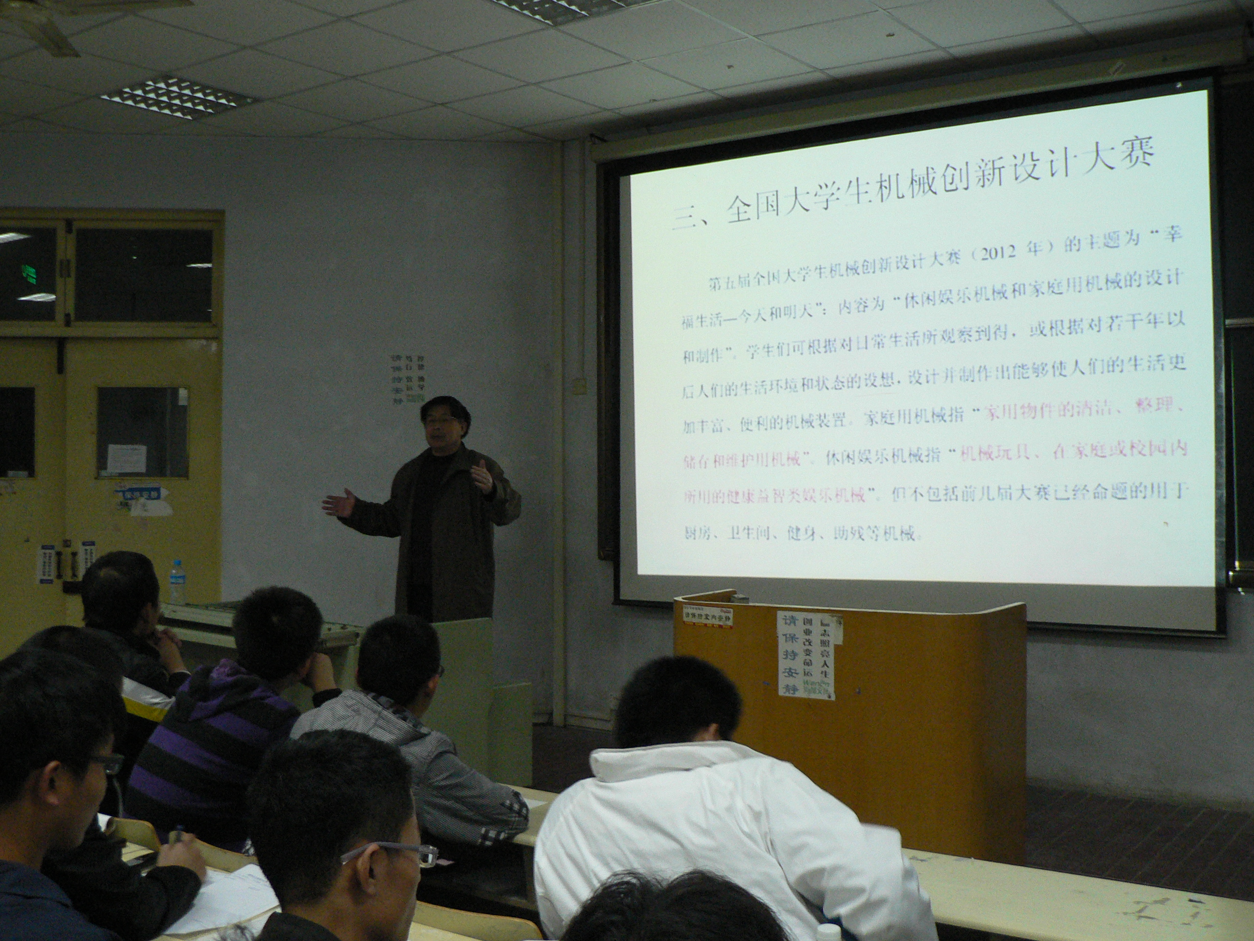 本次讲座以寻找发明创造题目来源引出主题,为同学们进行了包括社会科学类论文,调查报告和学术论文在内的四种论文的写作指导。同时,周院长还为同学们介绍了各类大赛的时间安排,作品要求与评价状况等。该比赛包括机械创新设计大赛、省机电产品创新设计竞赛及3D设计、技能大赛等多种吸引同学们眼球的重大赛事。在讲座中,周院长还勉励同学们积极进取,努力创新,鼓励同学们参赛。