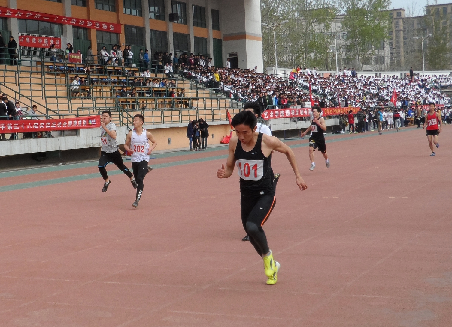 4月19日,我校第36届运动会进入了最后的竞争阶段。虽然天气微冷,但赛场上洋溢的热情依旧。在比赛场上,我院运动员们积极准备,蓄势待发。