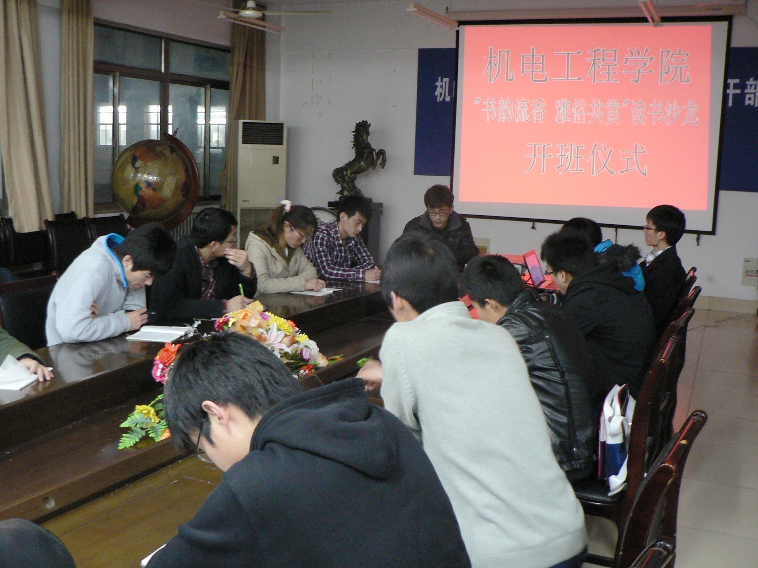 本次活动仪式由我院学生会副主席张杰主持,10级和11级各班派代表参加了本次仪式。仪式上,张杰向大家介绍了本次读书活动的目的和要求,并征求了各位代表关于读书活动主题确立的建议,大家见仁见智,都提出了自己建设性的建议。活动要求大家保证每月五个小时的阅读时间,并做好相关的笔记,每月大家会在教学楼进行读书心得的感悟交流,相互进行好书推荐,分享阅读成果。