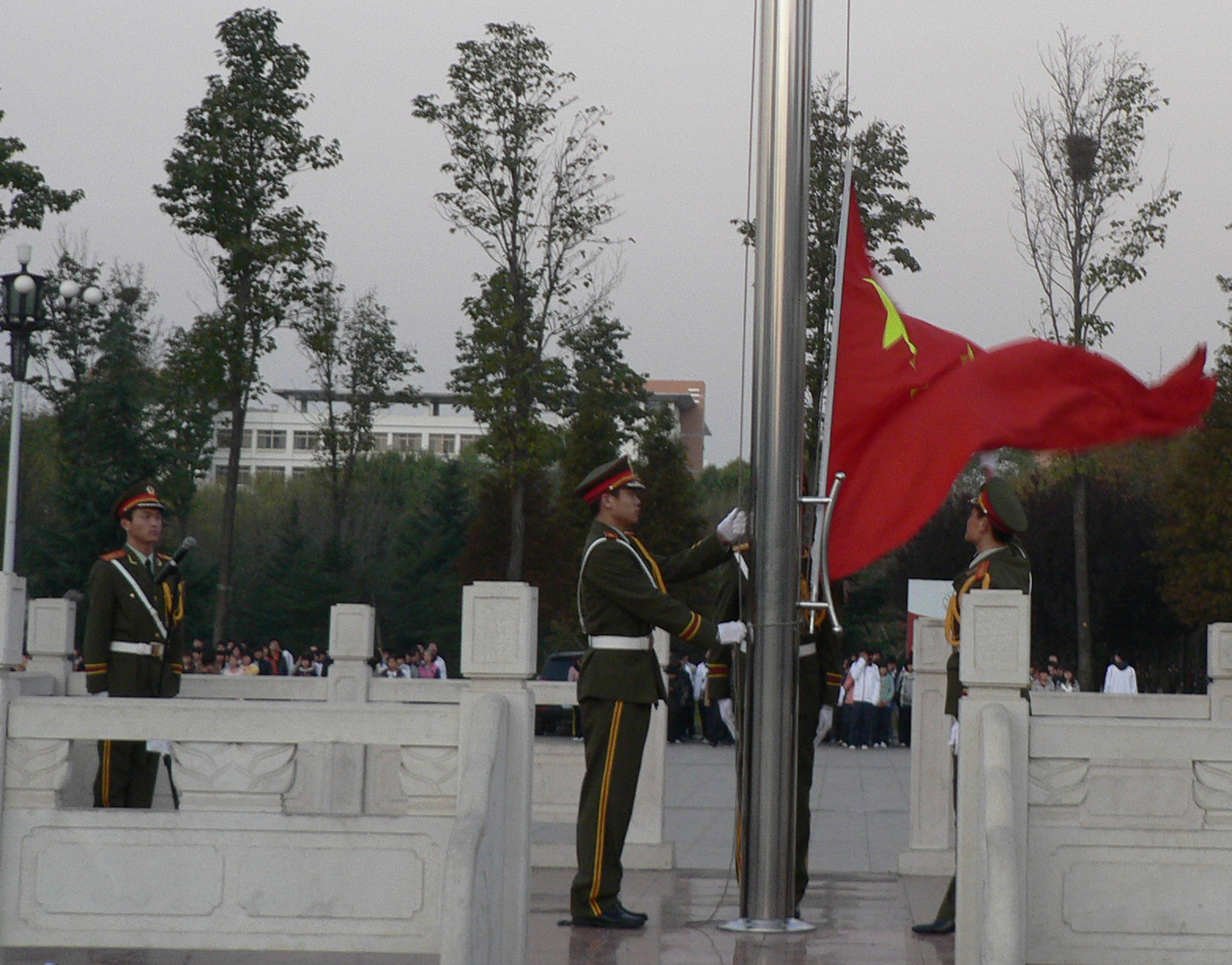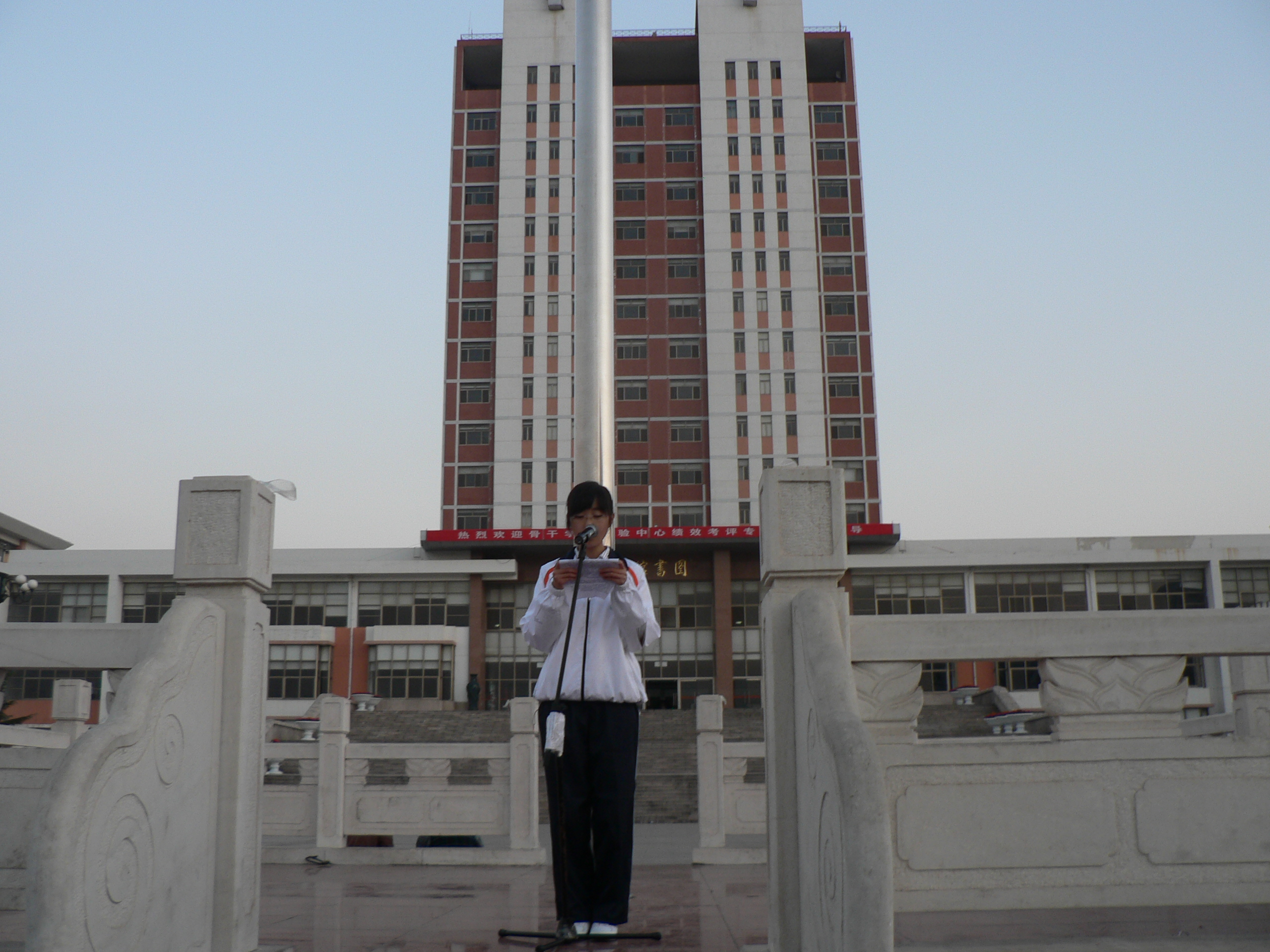 早晨六点我院学子在虹子广场集合完毕,伴随着朝霞,升旗仪式正式开始。鲜艳的五星红旗在国旗护卫队护卫下入场,全体学生庄严肃立。在激扬的国歌中,五星红旗冉冉升起,同学们庄重地向国旗行注目礼。随后,我院学生代表11级新生修嘉琦在国旗下发表题为《用文明行为奏响和谐之歌》的讲话,她呼吁同学们响应我校推进大学生基础文明教育活动,不断提高自己的基础文化修养,勿以善小而不为,明礼诚信,为营造文明、健康、团结、和谐的校园文化贡献自己的力量。