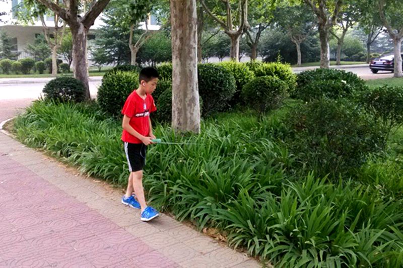 队员们按照之前的分组,让同学们依次出发。同学们有的并没有接触过这些东西,一张张小脸上带着严肃的神情,煞有介事地拿着仪器寻找。有趣的是,他们有的拿着仪器在草地一圈一圈地转,有的并则没有完全依靠手中的仪器。几个比较大一点的小朋友跟其他人分析队员有可能把发射源藏在哪里,让同学们分开寻找。原定的10分钟内必须放弃,有的小组只用了两分钟,大多数小组也在5分钟左右完成任务。