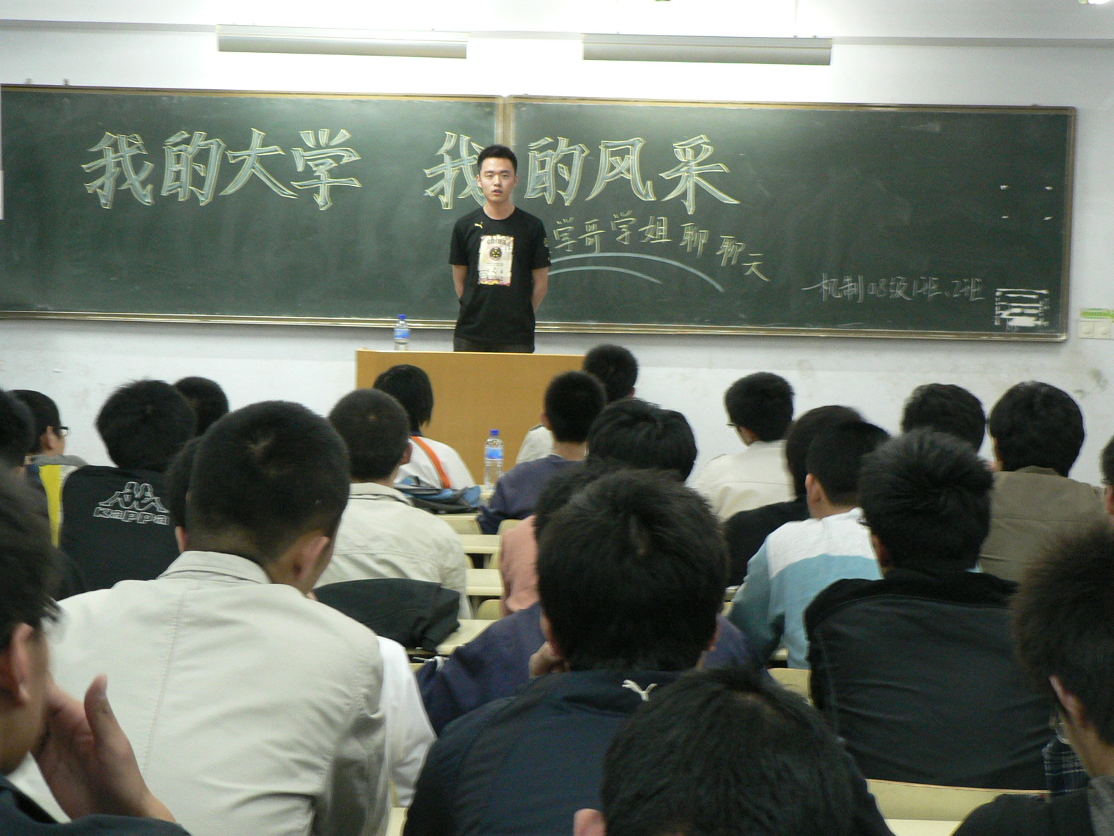 5月9日晚,我院机制08级一、二班在A502教室举行了以“我的大学 我的风采”为主题,关于大学学习生活的经验交流会。本次交流会请来了机电工程学院06级考上国家公务员的周广平、考上中南大学研究生的阴俊红以及07级多次获得省级以上科技创新奖的王玉丰作为主讲。