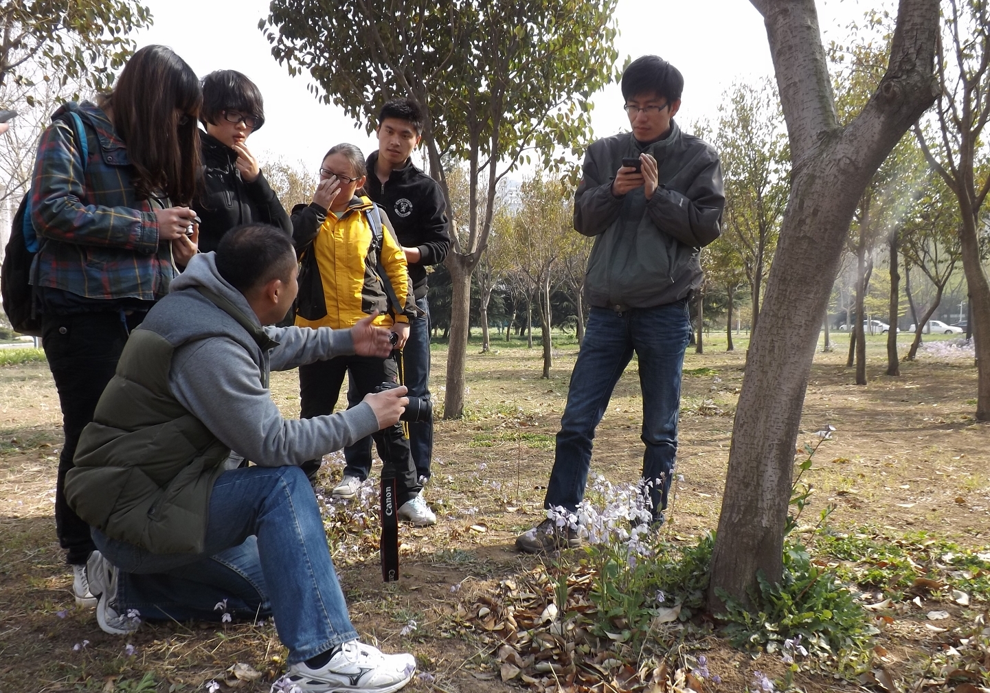 此次培训分为室内和室外两部分。上午的室内培训中,李光老师认真仔细讲解关于单反相机的使用方法及摄影的技巧,内容深入浅出。下午的室外培训中,老师带领学生游览校园,亲自指导拍摄校园春光,并详细解答学生提出的问题。