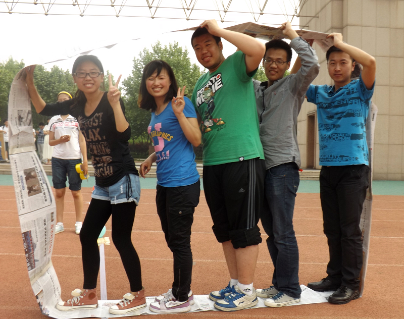 “无敌风火轮”让同学们用报纸粘成“风火轮”,依靠团队的默契配合跨过障碍,冲向终点; “水球发泄”活动是利用手中的水球对着自己的烦恼发泄。此外还有“泡泡龙”“保龄球”“幸福挡不住”“轨道车”四个有趣游戏。我院11、12级学生积极参加,从中收获着喜悦,整个体育场洋溢着一片欢声笑语。