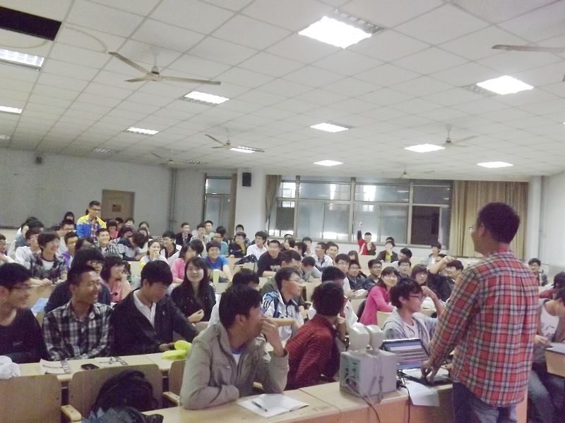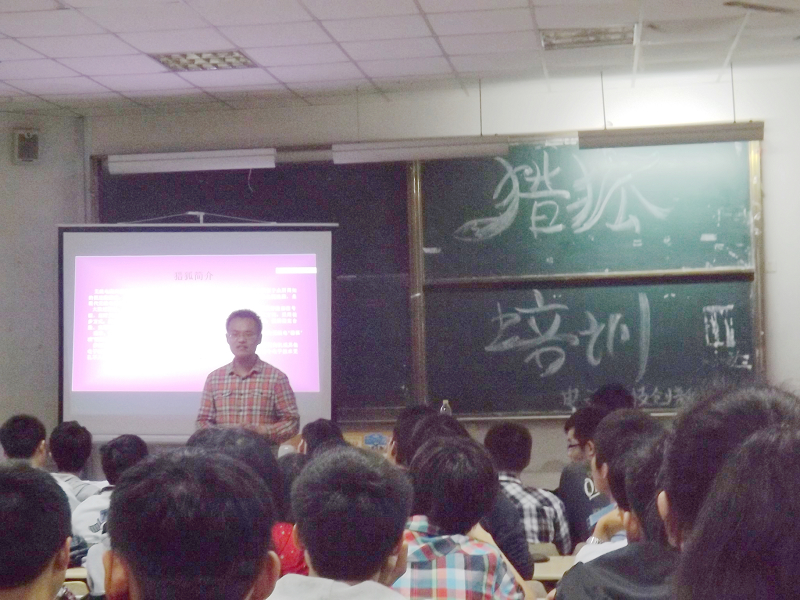 首先,培训老师向大家介绍了“猎狐”作为竞技比赛所具有的特点和近些年来在中国乃至世界的发展。同时,强调了我校此次举办比赛的基本行程安排和规定。接着,培训进入趣味竞答环节,对于答对问题的参赛队伍可以为本组在比赛中争取五秒钟的时间,而答错问题也要受到惩罚。但是同学们依然积极踊跃回答问题,争取得到更加充分的时间。台下同学更是积极互动,现场气氛十分活跃。最后,也是最重要的环节:介绍仪器的使用和答疑环节,同学们提出疑问,队员间互相商讨,为明天的比赛积极筹备。