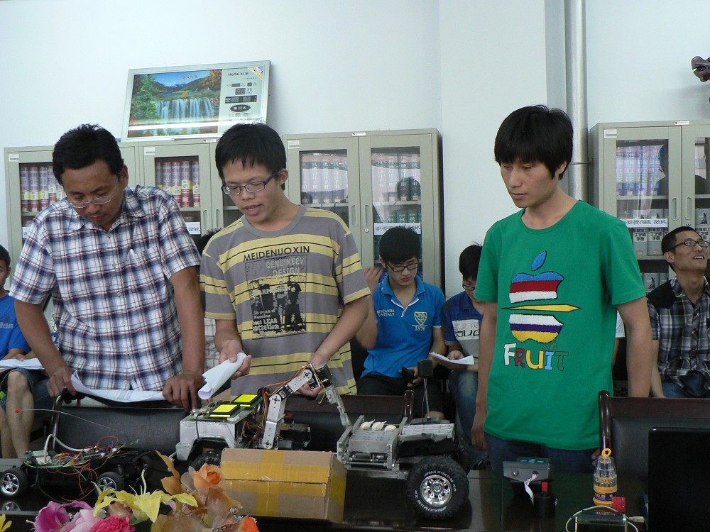 理信学院﹑食品学院﹑机电学院等众多学院的科技爱好发明者参加了本次比赛。各队的参赛选手分别从性能﹑制作原理以及实用价值等方面对自己的参赛作品进行了详细的介绍,一件件作品精彩纷呈,一项项发明亮人眼球。参赛作品中,能够插手机卡的防盗报警装置﹑基于智能机械臂的大蒜自动播种机更是赢得了评委及在场同学的赞叹和好评。