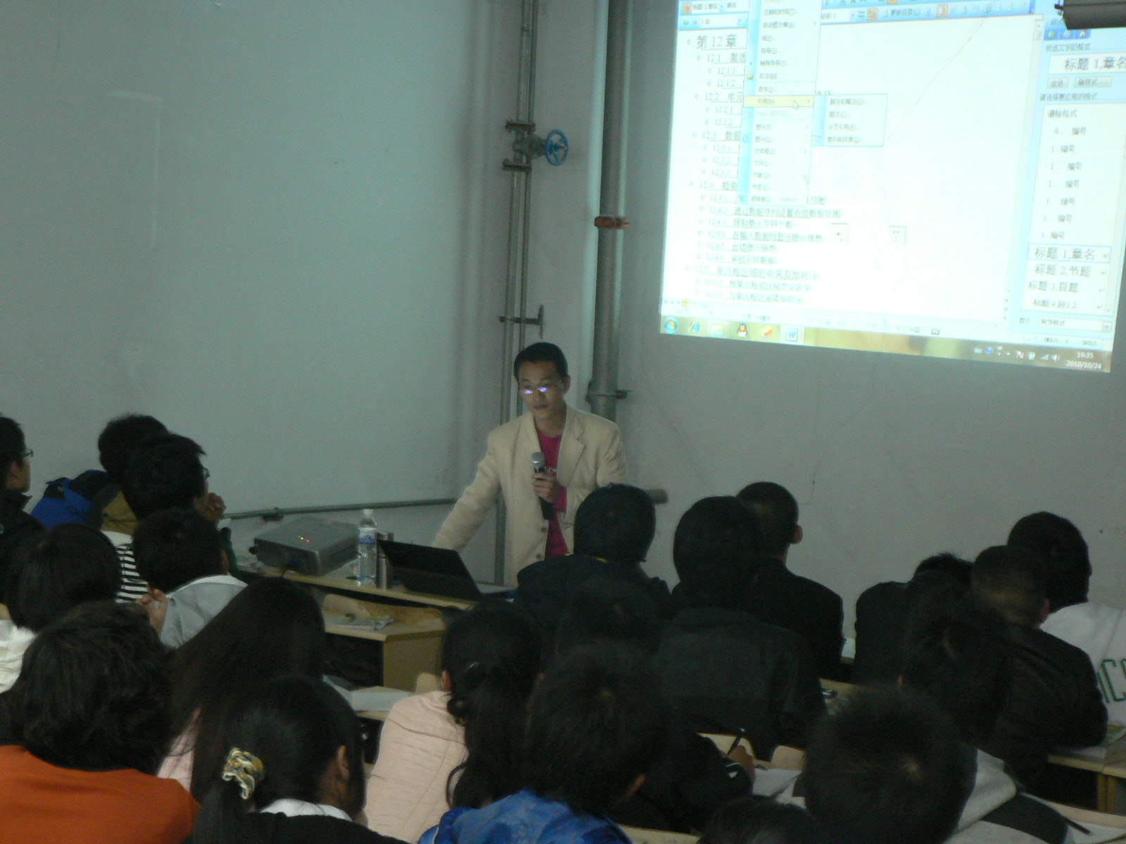 本次培训请来了一位"思途培训"的老师,他用简明的语言,给同学们讲了一些高办的知识,还谈了一些自己在大学时期和现在的工作经验.他希望学生干部能在工作中以身作责,勇于承担责任,坦然地接受批评.我院学生干部都收获了很多,大家都表示要在今后的工作中,努力提高,共同为营造一个团结和谐,积极进取的机电大家庭而努力。