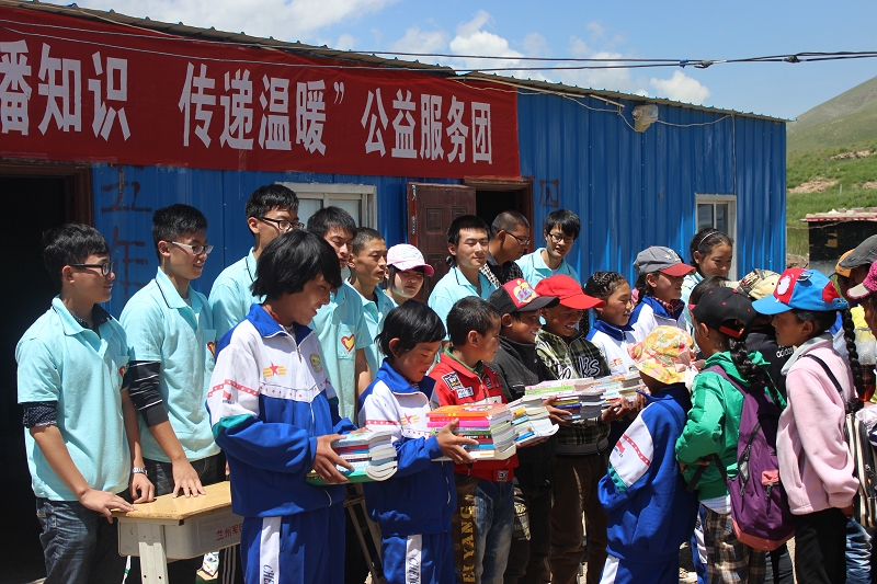 继2012年在玉树果青小学开展公益活动后,2013年7月15日,青岛农业大学机电工程学院“传播知识,传递温暖”公益服务团的10名同学在老师的带领下带着前期募集的书籍、文具再次出发,动身前往青海省玉树县。在经历了32个小时火车、20个小时汽车的长途颠簸后抵达玉树藏族自治州果青小学,开展为期一个周的公益活动。