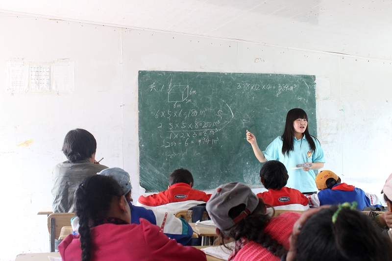 此外,由于学校师资不足,公益服务团在果青小学开展了义务支教活动,队员们担起了老师的角色。大家将知识点融入到游戏与儿歌中,开创新的教学方式,充分运用生活中的实例为大家讲解,通俗易懂的解题思路与方法增加了孩子们的学习兴趣,课堂气氛异常活跃,孩子们乐在学习中。
