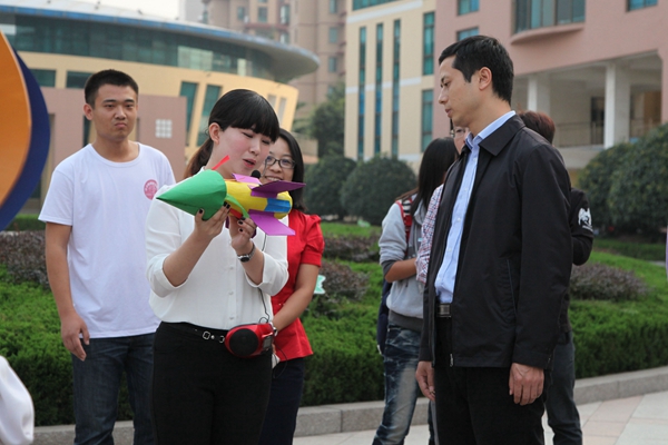 10月21日下午,共青团中央志愿者工作部副部长王明学到青岛农业大学调研志愿服务工作,在校党委副书记刘国秋,校团委书记初磊、副书记王峰,校团委实践部部长王光炬,机电工程学院团委书记孙晓凤的陪同下,王明学一行前往我校志愿服务基地、城阳区第二实验小学参观,在调研中详细了解了机电工程学院 “小小科学家”公益圈团队近年来在小学生当中开展的志愿服务工作。公益圈成员黄青鸽为出席的领导及老师做活动讲解。