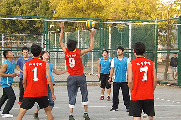 “青农杯”男子排球赛接近尾声。11月4日,我院的最后一场小组积分战和资源与环境学院在东排球场打响,我院团委老师王德国亲临赛场与队员进行交流指导。