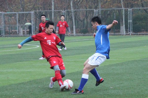 比赛在细雨中开始。虽然下着雨,但队员们的比赛热情并没有减少。比赛一开始,我院就展开了强大攻势,10号王帅华灵活带球,连过三人,虽然球在禁区外被对方破坏,但这次进攻点燃了我院气势,随后我院不断在对方门前制造威胁,对手一直被压制在自己的半场。11号王宁禁区外造成对方犯规,我院获得禁区前沿任意球机会,王宁亲自主罚,皮球越过人墙直挂球门死角,1:0我院拔得头筹。此后我院开启进攻模式,10号王帅华禁区内被对手绊倒,我院获得点球,王帅华点球骗过对方守门员,2:0,我院又得一分。随后,王帅华快速带球,禁区左侧低平球传中,杨光跟进脚后跟破门,3:0,我院将进一步扩大了领先优势。理信学院不甘落后,加紧反攻,带球突击我方半场,5号李立韩多次解围,化解了对方数次进攻。上半场结束我院3:0暂时领先。