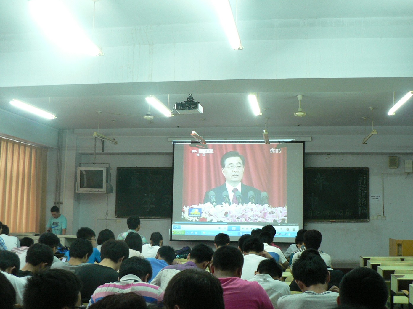 团课以学习胡锦涛总书记在中国共产主义青年团成立90周年大会上的重要讲话为内容。各班级有的以视频形式再现了胡锦涛总书记的讲话场景,有的以团支书诵读加同学们谈论的形式传达了胡书记的主要讲话内容。同学们专心听讲,认真笔记,并且在团支书的倡领下,对班级建设及自身发展提出了美好希冀。