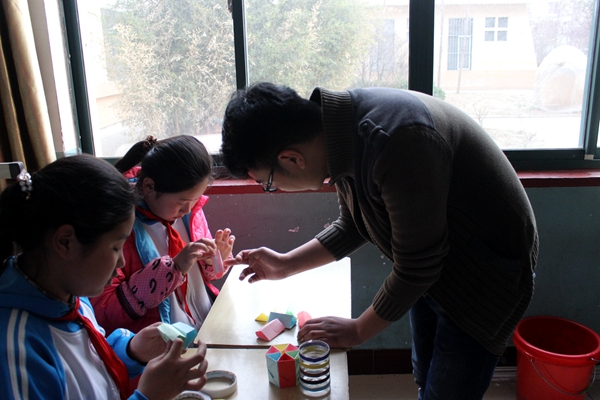 古庙小学老师提前组织孩子们在教室集合。社团部李尚教授孩子们简易笔筒制作方法,播放PPT以便于孩子们快速学习。孩子们兴趣盎然,仔细观摩,不断询问问题,对于每个问题干事们都做出耐心解答。活动最后,干事组织孩子们进行制作比赛,速度最快者便可获得样品笔筒。孩子们很快完成了制作,并将成品收藏起来。