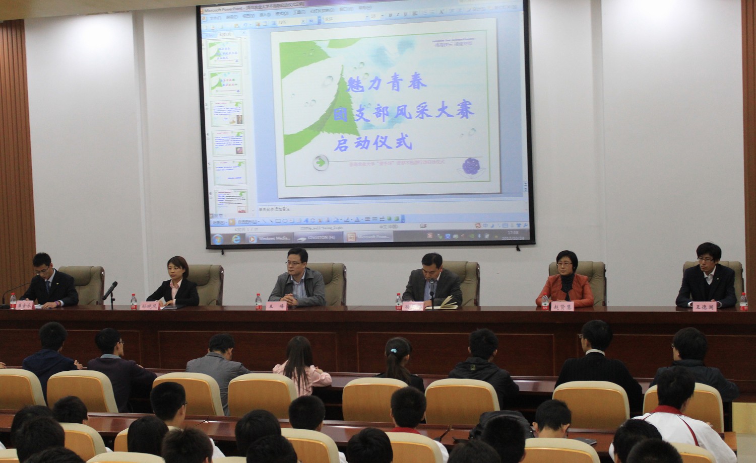 10月24日,我院在学术会馆第二报告厅组织开展”魅力青春团支部风采大赛”启动仪式。我校团委副书记王峰,院党委副书记孙景福及分团委的领导和老师出席了此启动仪式,我院2012级全体同学参加。