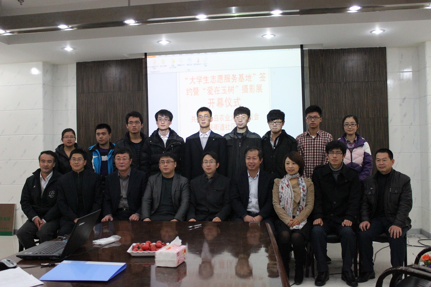 为号召更多的人参与到公益服务的行列中来,用真实感人的事迹唤起更多人对贫困儿童的关注。11月24日,我院联合流亭街道办事处和流亭社区教育中心在流亭社区举行了青岛农业大学大学生志愿服务基地签约暨“爱在玉树”摄影展开幕仪式。校团委科技实践部部长王光炬、流亭街道社区中心管理办公室主任李晓、教育办工会主席王克宝、成教中心校长王文斌及我院团委孙晓凤书记、王德国老师出席此次开幕仪式。流亭街道中小学生代表、家长代表及我院志愿者代表参加仪式,本次开幕仪式由我院团委书记孙晓凤主持。