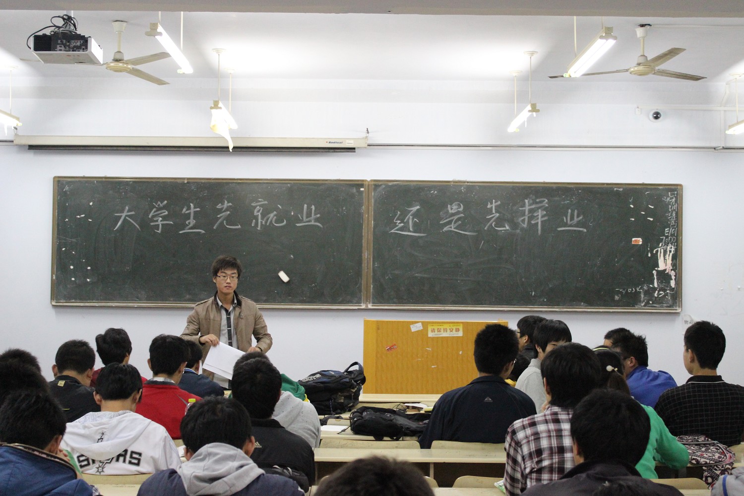 首先,各班团支书带领同学们认真讨论了择业与就业对当代大学生的影响,共同分析了目前青岛乃至全国大学生的严峻就业形势。各团支书告诫同学们:大学生群体与其他群体在择业观与就业观方面存在着显著区别,不同地域的大学生在两观点上也存在着差异。同时,他们引导和鼓励同学们关注社会形势,提前做好规划。团课最后,班级同学之间进行了互动,通过表演、辩论等一系列的新形式活跃氛围,增进感情。