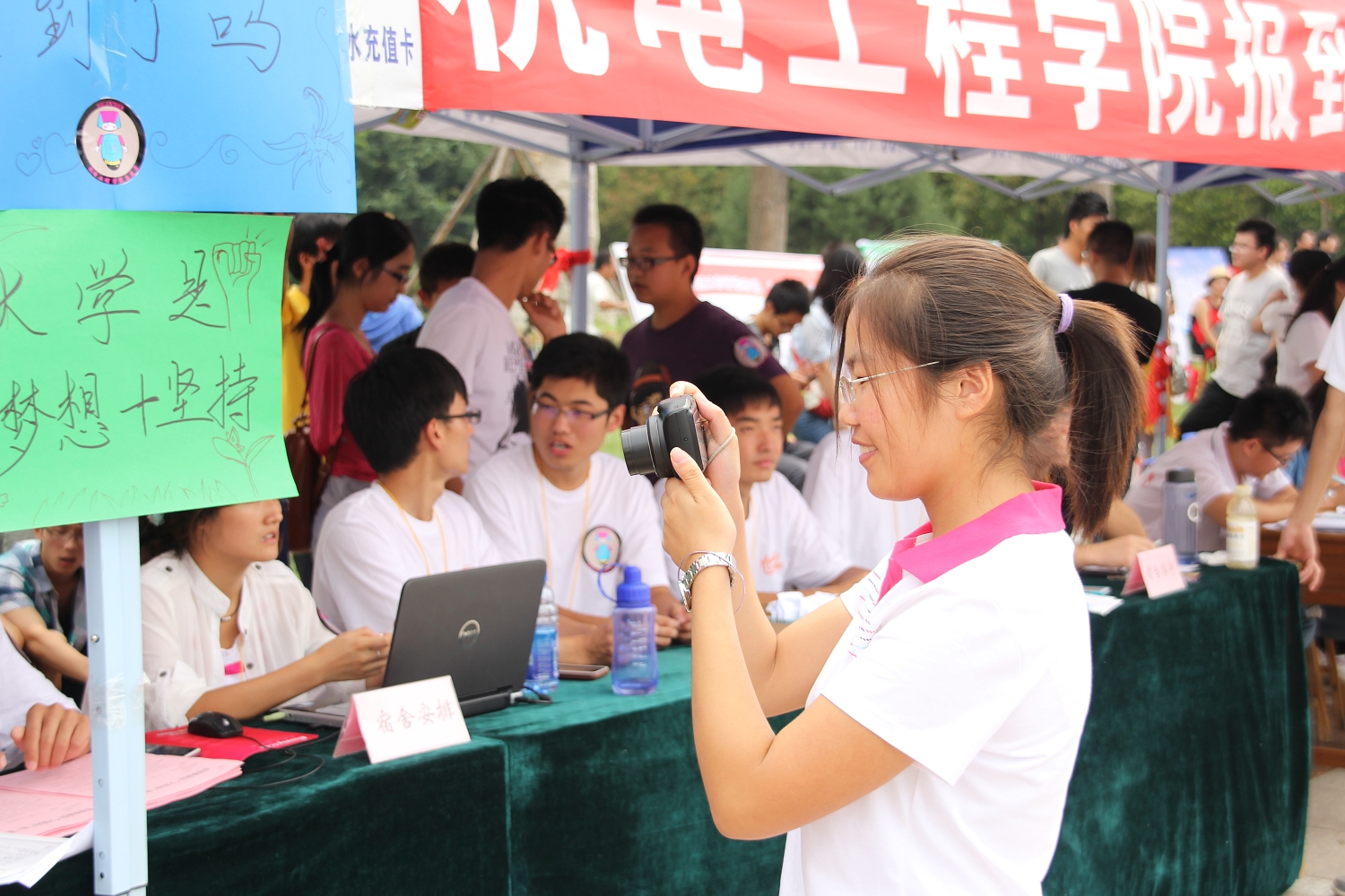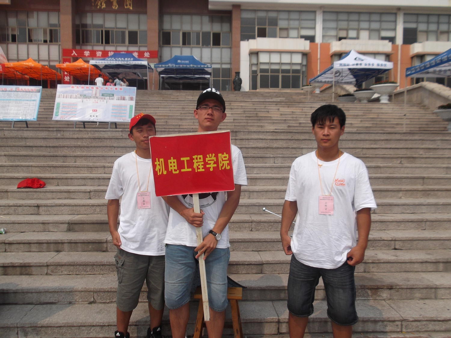 除了忙碌在前台的同学外,还有辛苦的幕后工作人员。主楼前,我院体育部的成员在烈日下站岗,为前来报到的新生做向导。让他们在第一时间接受温馨的服务。还有这么一群人,以饱满的热情穿梭在新生中,抓拍精彩的瞬间,为他们指路,为他们解决疑惑,帮他们搬行李。每天结束后写新闻来报道我们学院的迎新工作。这一群人以认真负责态度传递着机电工程学院“用心迎新,传递温暖”的精神。在这里,向所有幕前幕后辛苦迎新的同学致敬。