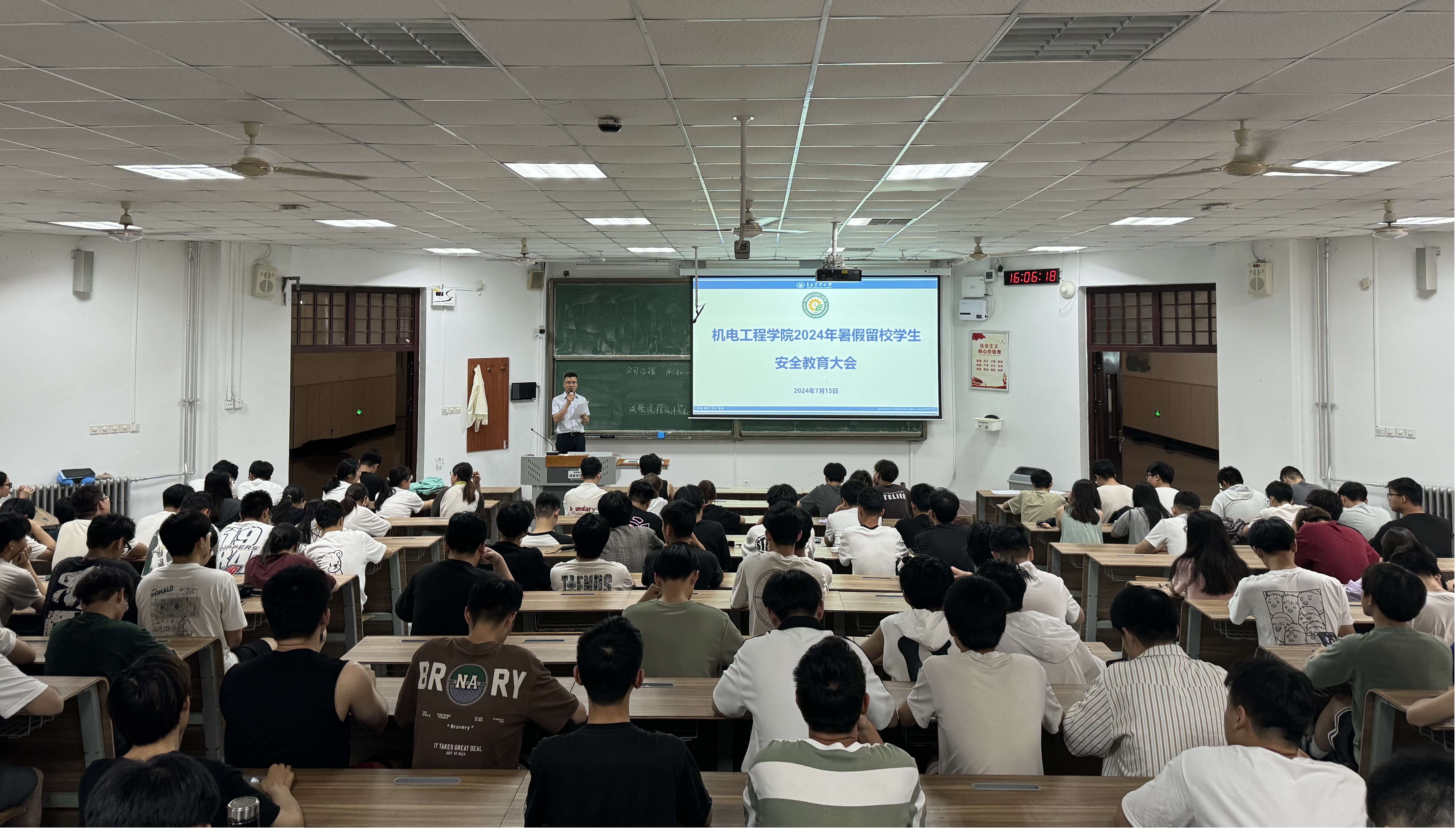 为进一步落实学校关于暑期留校学生工作要求,进一步提高学生安全防范意识,切实保障留校学生生活学习有序进行,7月15日,机电工程学院在教学楼B101教室召开暑期留校学生安全教育大会,暑期留校学生二百三十余人参加,学院辅导员朱戈、刘孟杰出席会议。